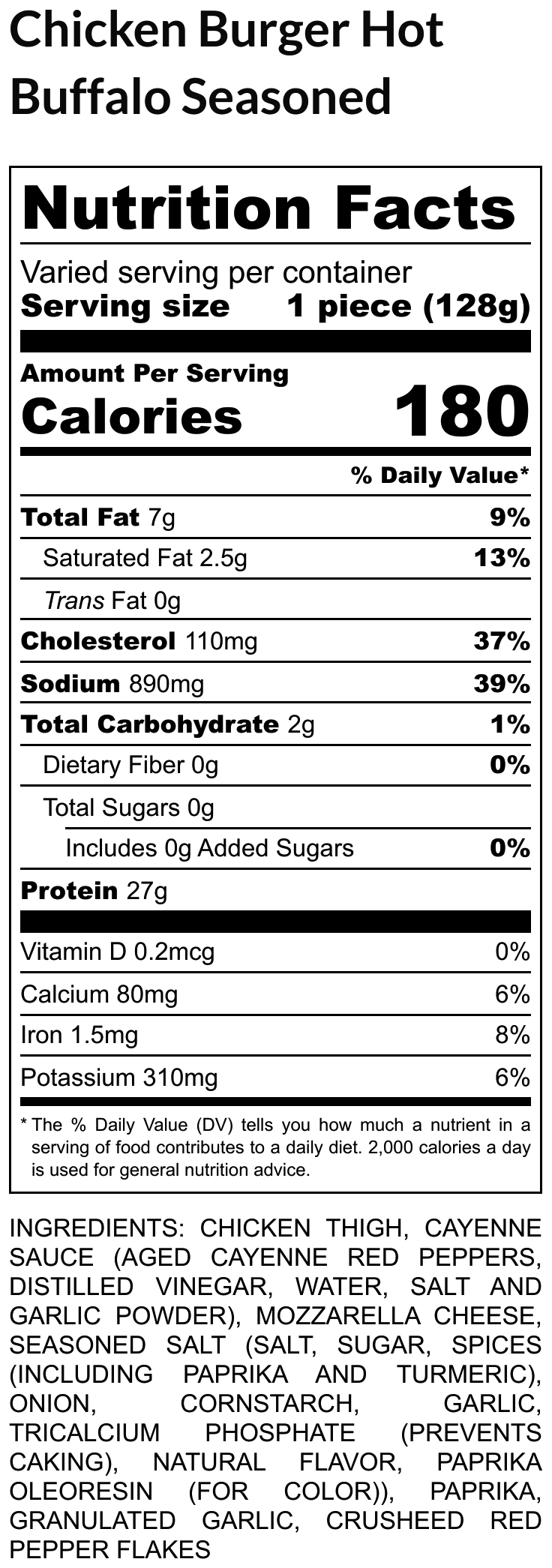 Ingredients: Chicken Thigh, Franks Hot Sauce, Shredded Mozzarella, Granulated Garlic, Ground Paprika, Seasoned Salt, Crushed Red Pepper.