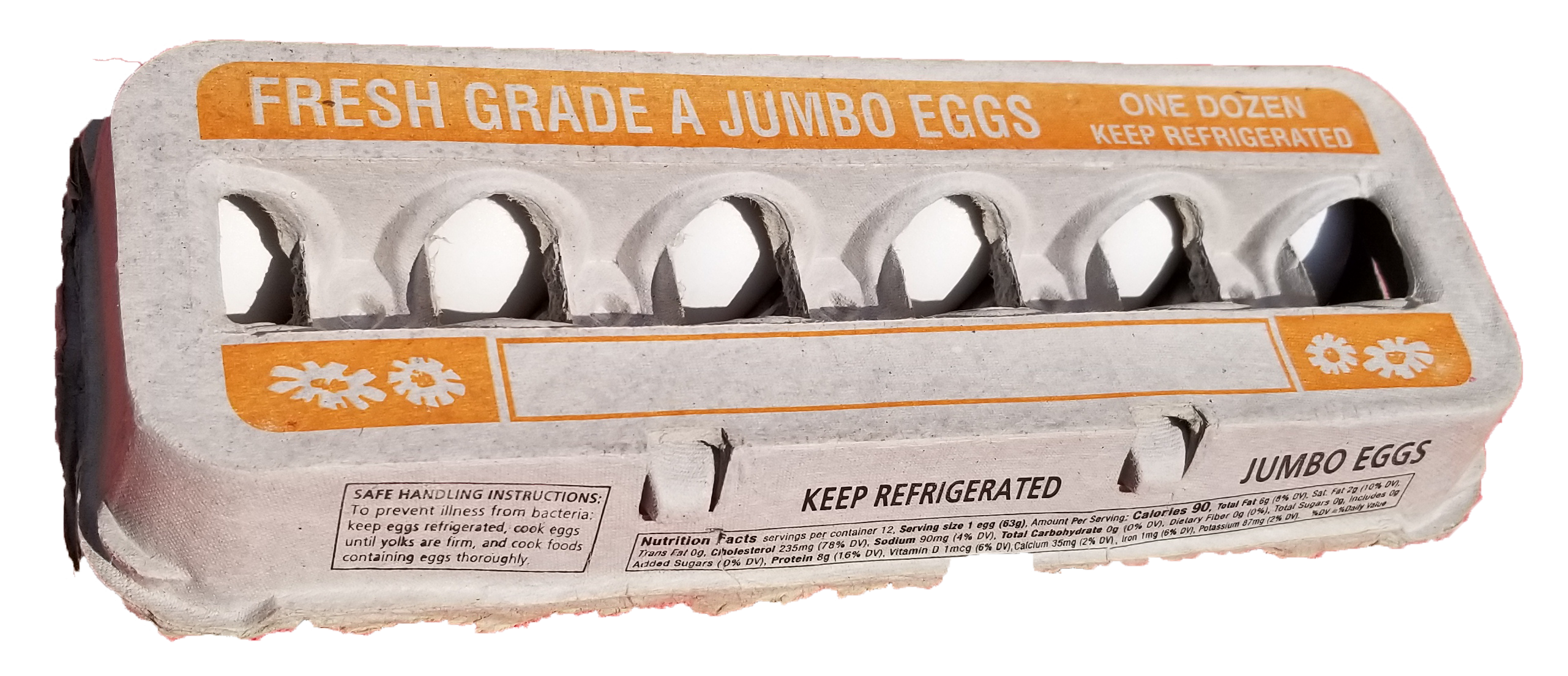 Farm fresh jumbo white chicken eggs. Sold by the dozen or by the tray (2½ dozen).*