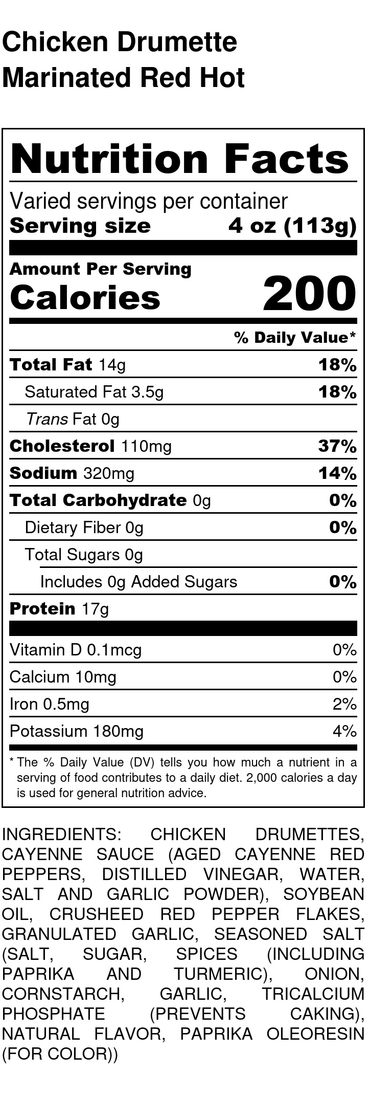 ![Red Hot Buffalo Style Marinated Chicken Wing Drumettes [Frozen] - Image 2](https://gofflepoultry.com/wp-content/uploads/2017/02/Chicken-Drumette-Marinated-Red-Hot-Nutrition-Label.jpg)
