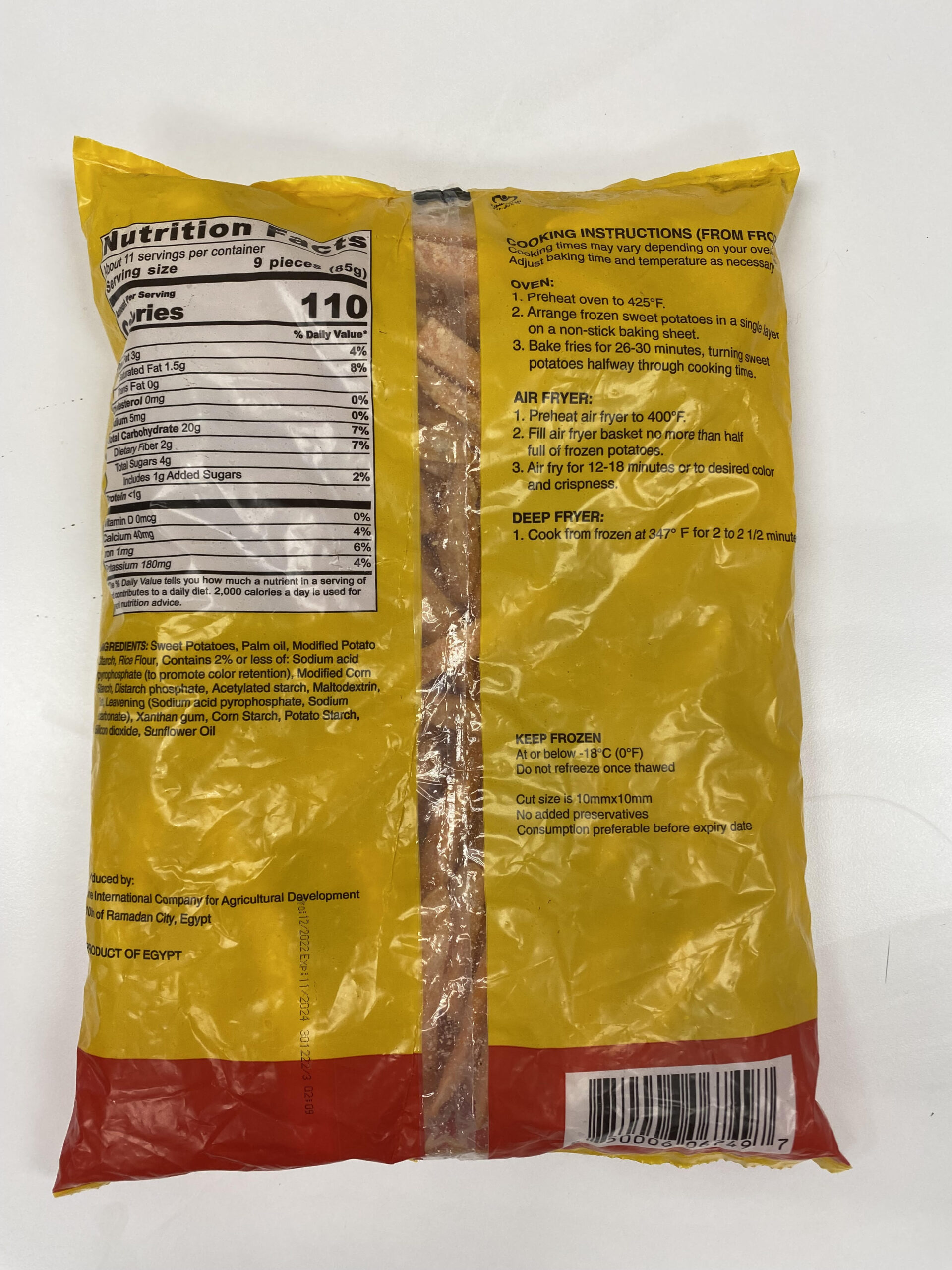 HEATING INSTRUCTIONS: Preheat oven to 425*F. Arrange frozen sweet potatoes in a single layer on a non-stick baking sheet. Bake fries for 26-30 minutes, turning sweet potatoes halfway through cooking time. Cooking times may vary depending on your oven. Adjust baking time and temperature as necessary.